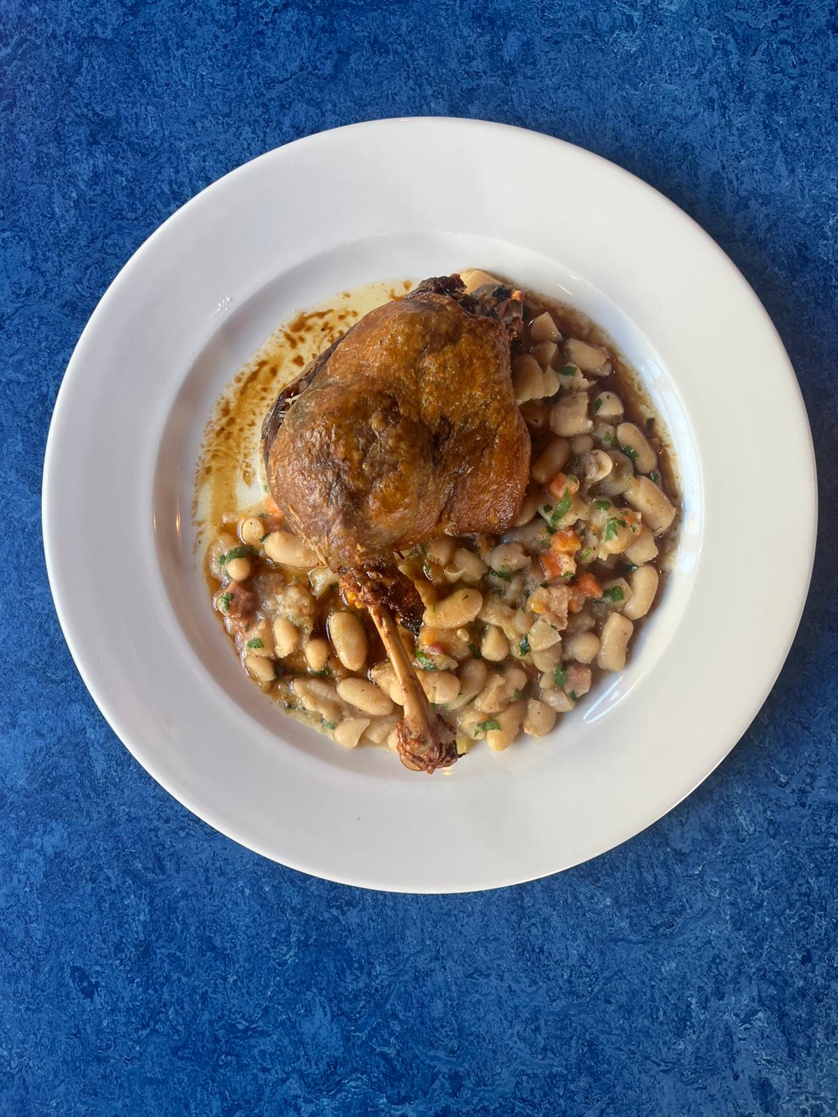 Confit Duck Leg, Braised Mogel Beans, Bacon
